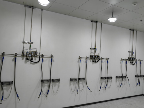 1.氣瓶間內心理壓力調接開關按鈕與實驗室外的氣路刷卡設備相互之間所采用SS316LBA管進行連入,通道內外面晶亮度為Ra<0.4umBA級通道。
